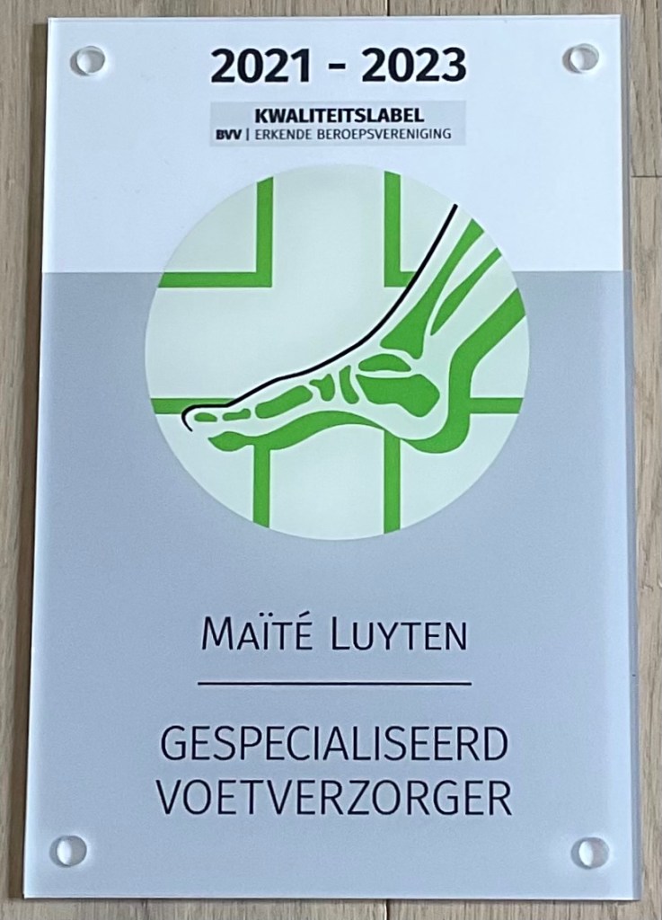 Je suis également membre de l’association Belge de pédicures spécialisé(e)s, association Belge reconnue, et j’ai reçu un label de qualité. Pour plus d’infos cliquez ici.